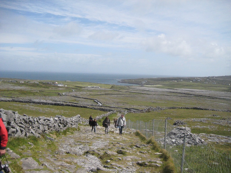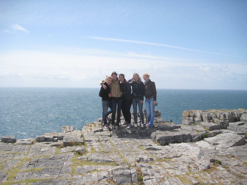 Die Fähre haben wir zum Glück noch mitbekommen, die uns dann zu der Insel Aran Islands geschifft hat. Holy moly, das ging ganz schön ab! Man hatte des Öffteren mal das Gefühl zu fliegen… Nach 50 Minuten rasanten Wellengang, haben wir dann endlich angelegt. Kurz nachdem wir ausgestiegen sind, wurden wir mit Angeboten die Insel zu erkunden überhäuft. Entweder per Rad, Kutsche oder Auto. Wir haben uns dann für’s Auto entschieden, indem auch noch vier weitere Deutsche waren. Der Fahrer hat dann unser Trüppchen zu den Klippen gebracht. Wir haben das perfekte Wetter erwischt – besser hätte es nicht sein können. Danach schauten wir uns noch zwei, drei andere Sehenswürdigkeiten an, bis wir dann um 16:30 die Fähre zurück nahmen. Aran Islands hat ganze 750 Einwohner, ist 14km lang und 5km breit. Die Leute (vor allem die älteren Herren) sehen sich alle zum verwechseln ähnlich. Junge Leute flüchten nach ihrer Schulausbildung meist nach Austalien (würde ich auch machen!)