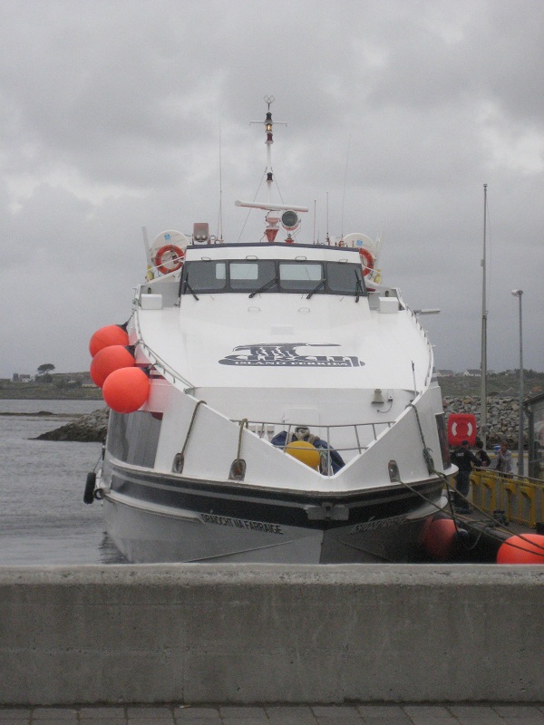 Freitag war erstmal wie immer ein ganz normaler Tag. Die Zeit ist verflogen, was nicht unbedingt das Schlechteste war. Die Kids waren wieder sehr gut drauf und haben mir wieder keine Schwierigkeiten bereitet. Dieses mal war ich so schlau und habe meine Sachen für das Wochenende schon vormittags zusammen gepackt (auf die Gefahr hin, dass Michelle sich wieder verspätet.) Meine Befürchtung ist natürlich eingetroffen und die Weltmeisterin in verspäten ist erst um 17:40 zuhause eingetrudelt. Obwohl ich schon das meiste fertig gepackt habe, musste ich mich trotzdem beeilen. Um 18 Uhr wollten wir uns schließlich alle bei Tesco treffen. Und Kathi mussten wir auch noch abholen… auf den Weg dahin haben wir natürlich noch Nana getroffen… ihr könnt euch sicherlich vorstellen was daraus wieder entstanden ist! Mit wenig Verspätung kamen wir dann schließlich an und haben paar Kleinigkeiten gekauft. Dann traten wir die 2 1/2 stündige Busfahrt nach Galway an. Das Hostel hat mir sehr gut gefallen, war cool eingerichtet und es waren alle Altersgruppen vertreten. Unser 6er Zimmer wurde (vorerst) nur von uns bewohnt. Am Freitagabend haben wir nicht mehr viel gemacht – sind nur kurz in die Innenstadt gelaufen um zu gucken was so los ist – war aber eher ruhig. Deshalb lagen wir schon um 23:15 in den Betten!! Ich glaub das gab’s noch nie 😀 Am nächsten Morgen habe ich den Duschanfang gemacht. Wurd aber nichts draus. Im ganzen Hostel war das Wasser kalt. Arsch kalt! Um 9 Uhr ging unser Bus zur Fähre. Allerdings mussten wir erstmal gute 45 Minuten warten bis wir dann endlich losgefahren sind.