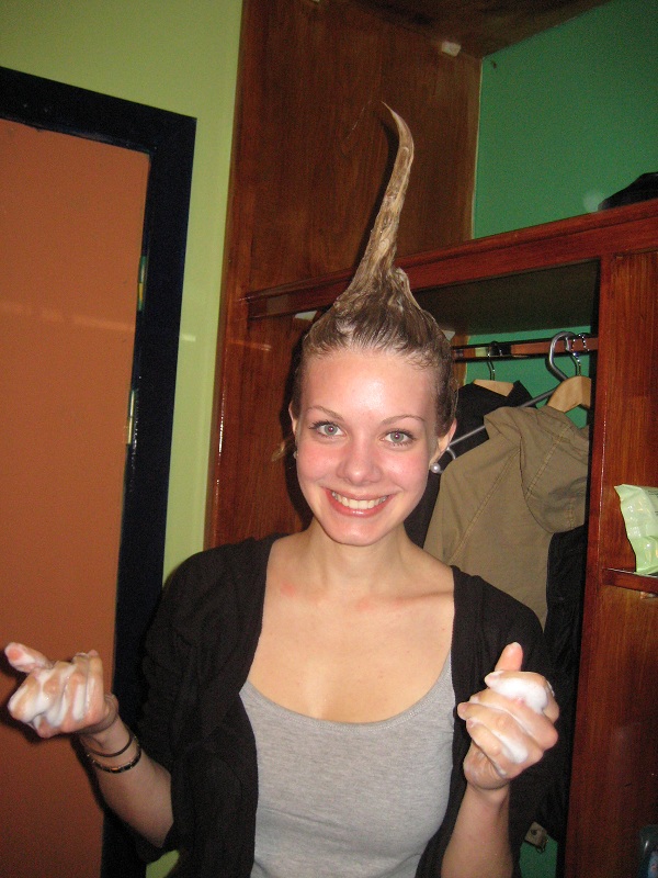 waschen… es war recht kühl 😀 zwischenzeitlich hat sich ein weiterer Bewohner in unser Zimmer einquatiert. Ein Mann, aus Deutschland, um einges älter. Von dem hat man aber zum Glück nicht viel gesehen, geweige- denn gehört