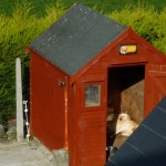 … gibt es hier auch. Die leben aber draußen. Die beiden Labradorhunde vegetieren den ganzen Tag in ihrem Zwinger vor sich hin, bis James am Abend mit denen rausgeht. Aber dann auch nur an der Leine. Die Hunde mögen mich nicht so richtig. Die bekommen jedes Mal Bellanfälle – es geht schon los wenn ich nur die Tür öffne. Allerdings besteche ich die jetzt immer mit Jenny’s angeknabberten Sandwich aus der Schule. Mittlerweile hat es sich etwas gebessert.