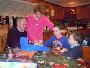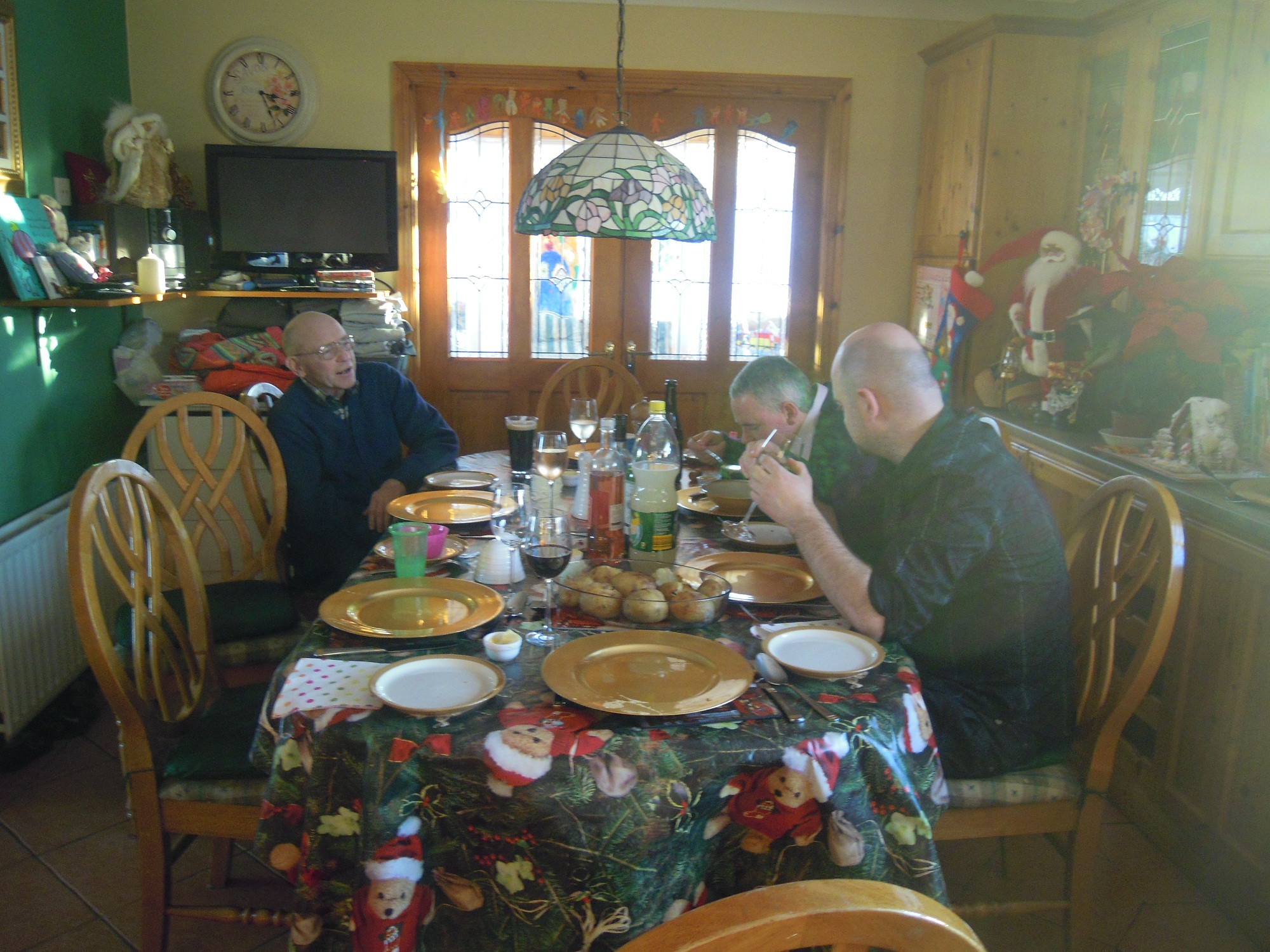 Zumindest hier in Irland. Als wir wieder zurück waren, hab ich mal paar Minuten für mich gehabt, bis dann schon um 15 Uhr Anne, Frank und Eugene kamen. Das Essen war bei weitem nicht so gut wie bei mir zuhause, allerdings waren die Knödel sehr akzeptabel 🙂 Es war auch nicht so gemütlich wie bei mir zuhause. Ständig ist irgendjemand aufgestanden, hat die Kinder gefüttert, hat irgendwas weggespült oder