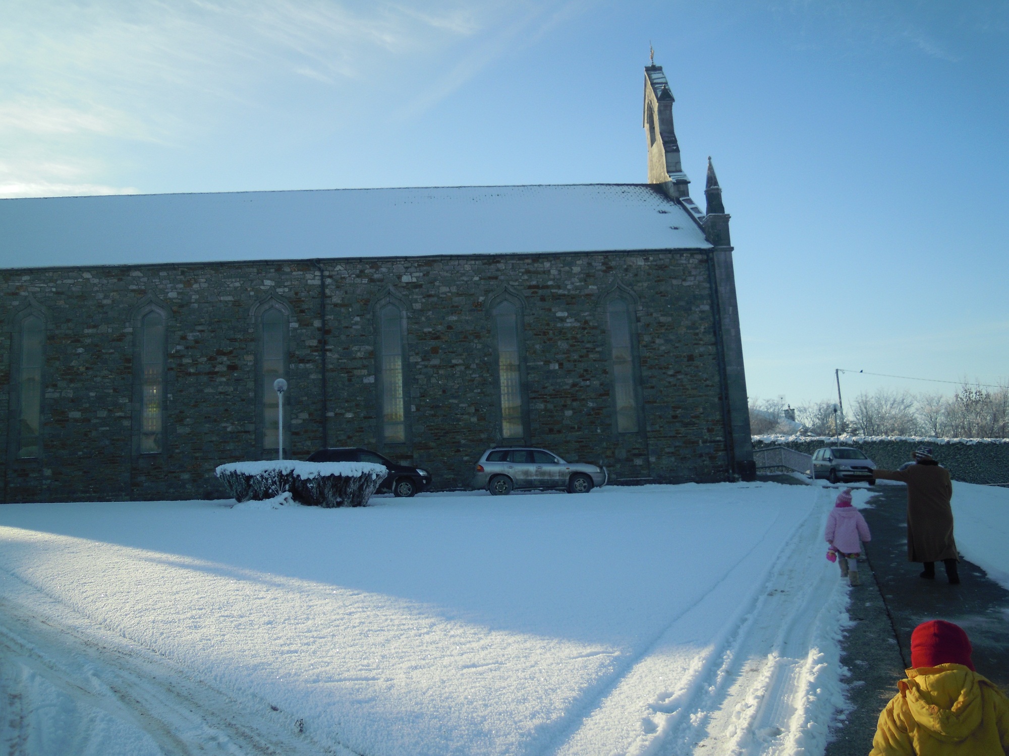 Nachdem dann irgendwann alles ausprobiert wurde, gab’s erstmal ein typisch irisches Frühstück, mit Würstchen, Spiegelei, Weißbrot und Pudding (Blutwurst). Brauche ich persönlich jetzt nicht so oft. Dann sind wir natürlich noch in die Kirche gefahren. Katholische Kirche. Angenehm, sehr angenehm zum weiter schlafen. Ich habe von der Predigt nichts verstanden, weil die Akustik total schlecht war und der Gute dazu noch etwas genuschelt hat. Das war das erste und letzte Mal.